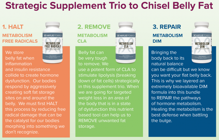 The Bye-Bye Belly Fat Bundle includes three products. Used together, Haylie Pomroy uses