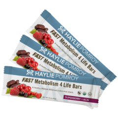 1) Metabolism 4 Life Cacao + Acai Bars (12 bars)The Cacao Nibs in Haylie Pomroy's Metabolism 4 Life Organic Cacao Acai Bars add crunch and dark chocolate flavor, not to mention rich antioxidants.